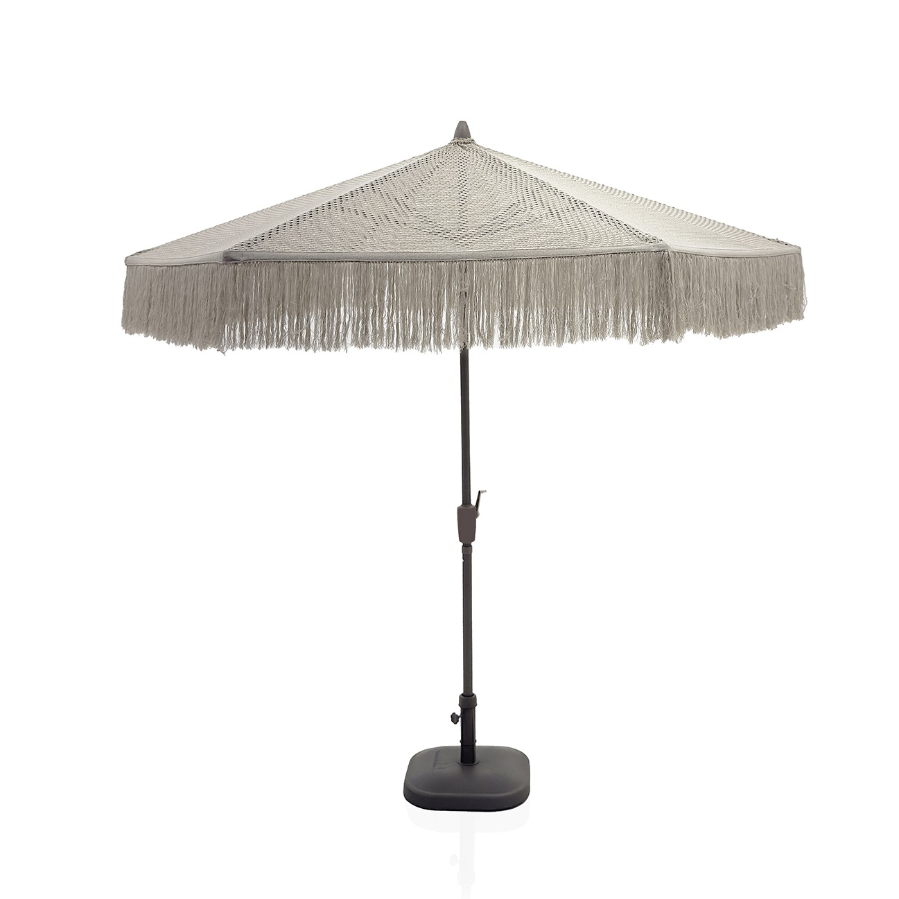 | Especificações | Conheça a opção em tricô do ombrellone 2x2m, uma verdadeira obra-prima com charmosas franjas que dançam com a brisa. Cobertura e franjas confeccionada em fio solar de alta performance, garantindo durabilidade e resistência às intempéries, criando atmosferas aconchegantes, sofisticadas e cheias de personalidade. Escolha entre o delicado ponto de tricô aberto, que permite uma iluminação suave e arejada, ou o elegante ponto fechado, para uma sombra mais densa e acolhedora. Ambos os estilos transformam o seu ambiente, adicionando textura, movimento e um toque exclusivo de design. Por baixo dessa nova e deslumbrante cobertura, mantém-se a estrutura conável que você já conhece: haste central e armação em alumínio que garantem qualidade e leveza. O sistema de abertura e fechamento simples, com um prático regulador dentado para travar a cobertura, assegura facilidade e segurança no uso diário. |